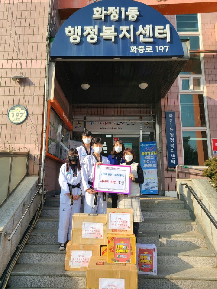 [부자동네타임즈 김인수기자] 고양시 화정1동행정복지센터(동장 황선혜)는 지난 16일, 국가대표 용인대 덕양 태권도장(관장 전종호)이 사랑의 라면 359봉지를 전달했다고 밝혔다.