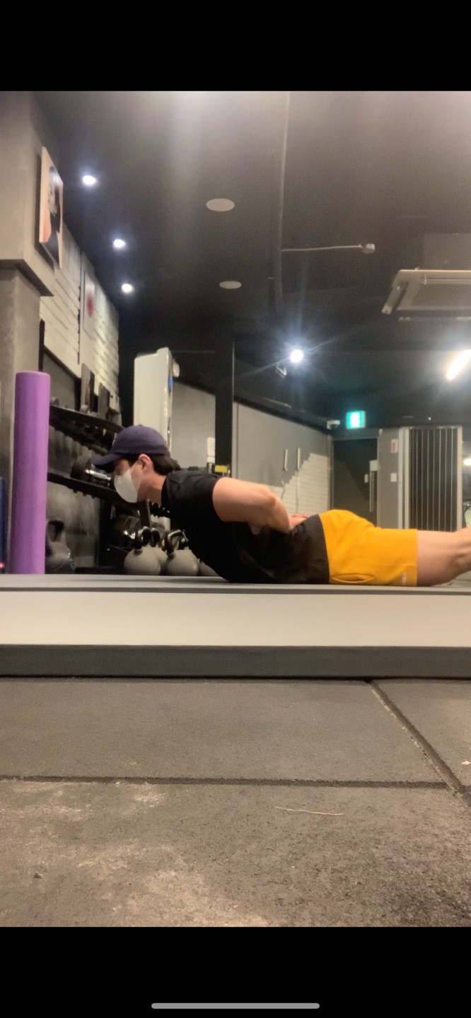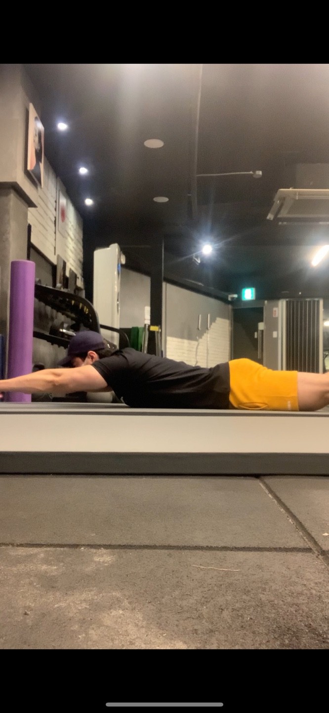 앞쪽으로 누운 상태에서 만세를 한다.