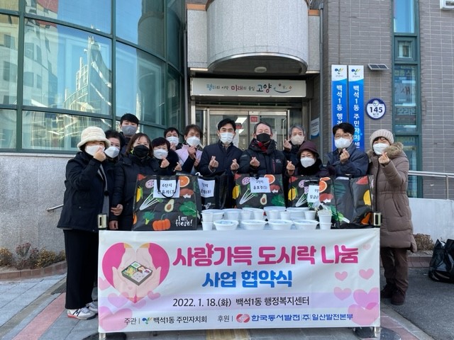 지난 18일 진행한 협약식에는 백석1동 주민자치회 회장을 비롯한 도시락 배달 봉사를 맡고 있는 위원들과 백석1동장, 한국동서발전(주)일산발전본부 관계 직원 등 10여명이 참석하였다.