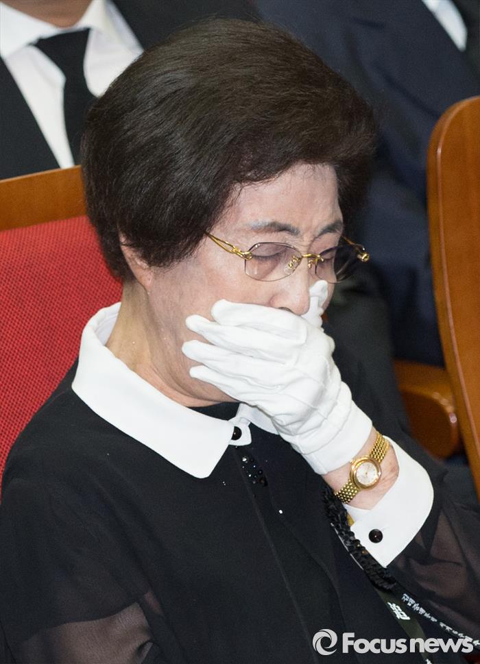 △ 지난 8월 18일 오전 서울 동작구 현충로 국립서울현충원 현충관에서 열린 故 김대중 전 대통령 서거 6주기 추도식에 참석한 김 전 대통령 부 인 이희호 여사가 기침을 하고 있다. <사진제공=포커스뉴스> |