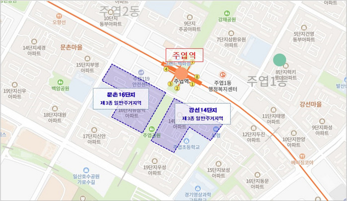 [사진설명] 문촌16, 강선14단지 리모델링조합 현황 위치.