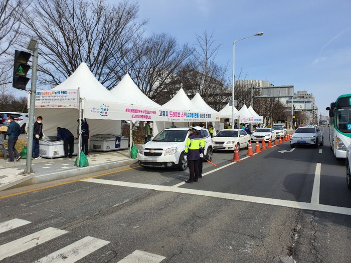 고양시는 코로나19 감염을 최소화하면서도 판로가 막혀 어려운 농가도 돕고, 시민들에게 질 좋고 우수한 우리 지역의 신선 농산물을 제공하기 위해 ‘드라이브 스루 안심판매장’을 개발했다.