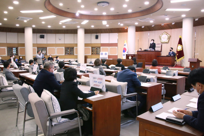 공문을 받은 집행부는 본회의장에서의 사과는 적절하지 않다는 판단을 담아 회신, 민주당 의원들과 집행부 특정 직원과간 갈등은 좀처럼 해법을 찾지 못하고 있다.
