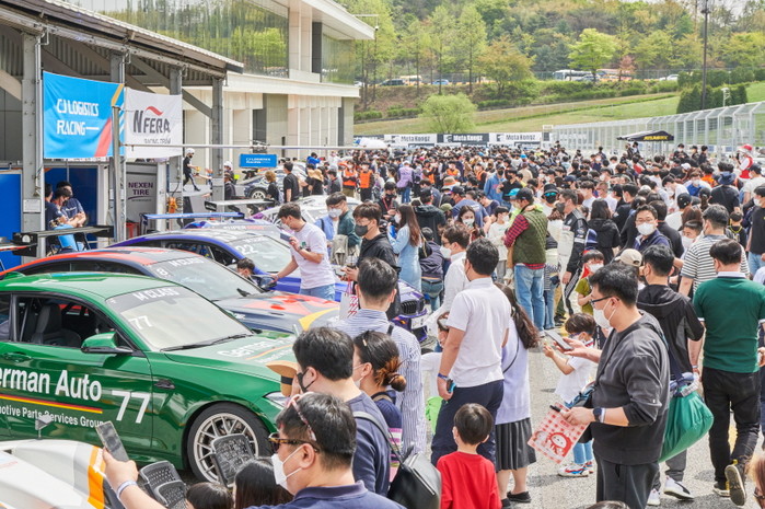 [사진설명] 2022 슈퍼레이스 챔피언십 개막 첫날, 피트워크 이벤트 시간에 구경중인 1만여 명의 관객들.