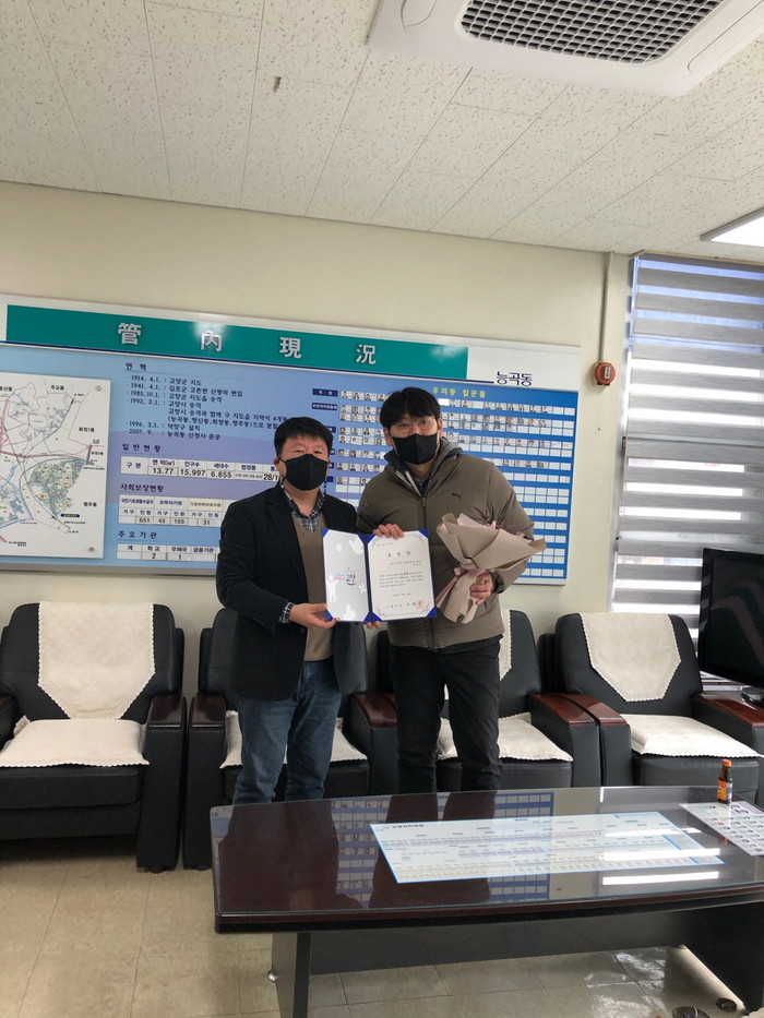 [부자동네타임즈 김인수기자] 고양시 덕양구 능곡동 행정복지센터(동장 신재홍)는 최근 이웃들을 위해 KF94 마스크 2만장 기부한 ㈜제이티디 김용수 대표에게 지난 21일 선행시민 표창장을 전달했다.
