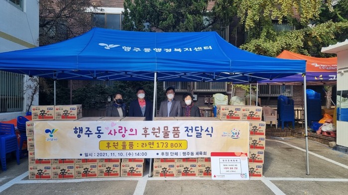 [부자동네타임즈 김인수기자] 고양시 덕양구 행주동행정복지센터(동장 김종성)는 행주동 체육회가 "지난 10일 관내 취약계층을 위해 라면박스 173개(500만 원 상당)를 기탁했다."고 밝혔다.