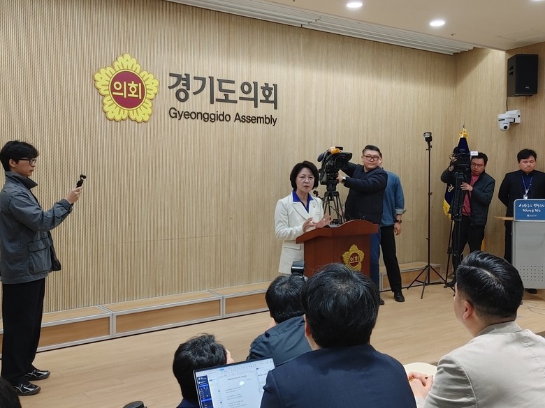| ▲추미애 더불어민주당 경기도지사 후보 8일 경기도의회 브리핑룸에서 기자회견 모습. |