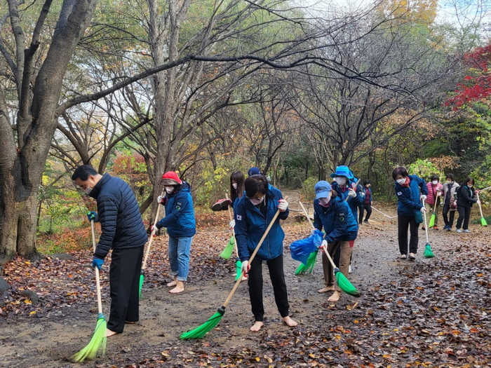 이번 쓰담데이는 정발산공원의 낙엽을 빗자루로 쓸고, 공원주변 쓰레기를 수거하는 활동을 진행했다.