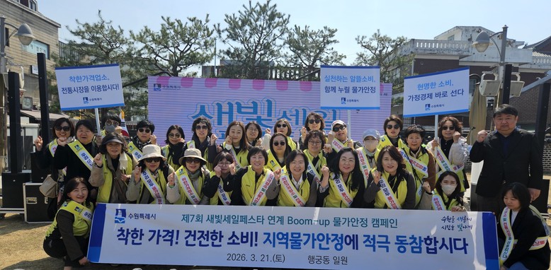 [부자동네타임즈=이세제 기자] 수원특례시(시장 이재준)는 제7회 새빛세일페스타 수원(3월 20일~29일)과 연계해 전통시장과 착한가격업소 이용을 장려하는 ‘물가안정 릴레이 캠페인’을 전개했다.