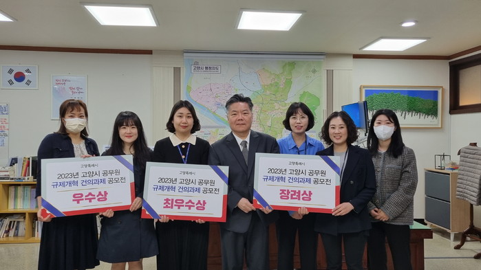[부자동네타임즈 김인수기자] 고양특례시(시장 이동환)는 지난 25일 ‘2023년 규제개혁 건의과제 공모’에서 7건의 규제개혁 우수과제를 선정하고 시상식을 실시했다.