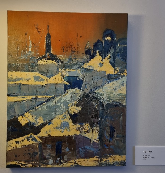 전시 작품 소재 대부분은 작가가 세계 각국을 여행하며 인상 깊었던 장소의 건축물을 소재로 화폭에 옮겼다.