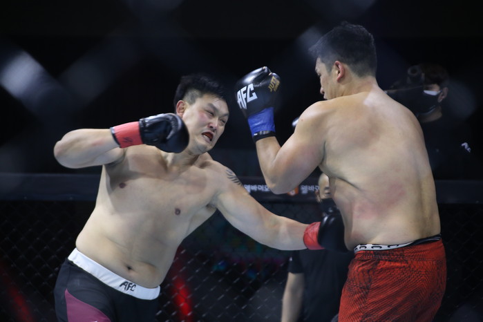 입식 무제한급 타이틀전 유양래(로닌크루짐/더블지FC) VS 명현만(AFC) 메인 6경기가 진행 되였다. 경기 결과는 3라운드 54초 펀치에 의한 KO 승으로 레드 코너 ‘명승사자’ 명현만 선수가 승리했습니다.