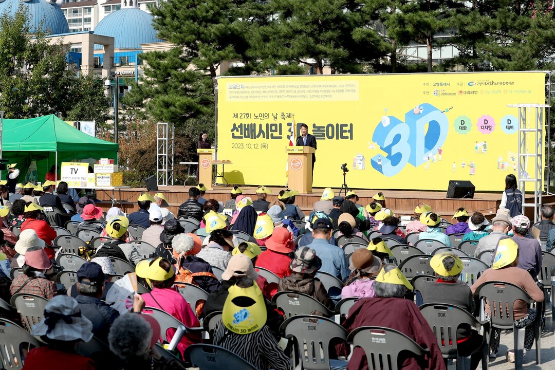 [부자동네타임즈 = 김인수 기자] 고양특례시 대화노인종합복지관이 10월 12일(목) 제27회 노인의 날을 기념해 ‘선배시민 3디(D) 놀이터 축제’를 개최했다. ‘선배시민 3디(D) 놀이터’ 디(D)는 대화, 디지털, 데이의 디(D)에서 따왔다.