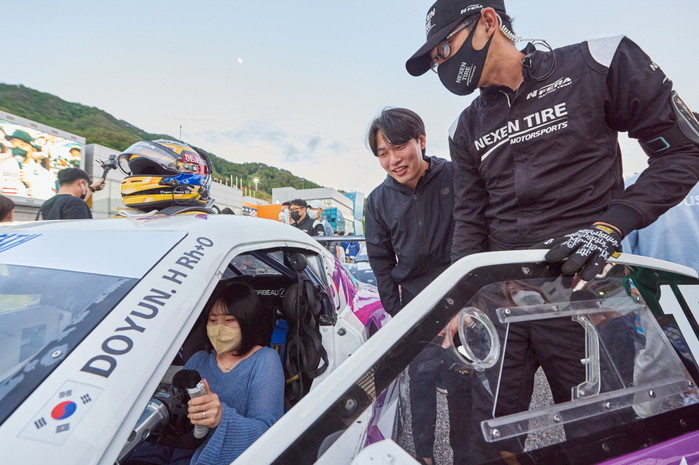 [사진설명] 그리드워크 시간에 한 팬이 엔페라레이싱팀 스톡카를 타보고 있다.