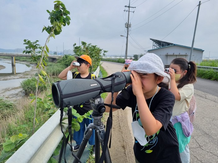 생태탐방 ‘저어새 탐구대’는 법곳동에 위치한 장월평천에서 진행됐으며 매년 여름 먹이활동을 위해 마을을 찾는 멸종위기종 저어새와 여름철새 서식지를 탐구했다.