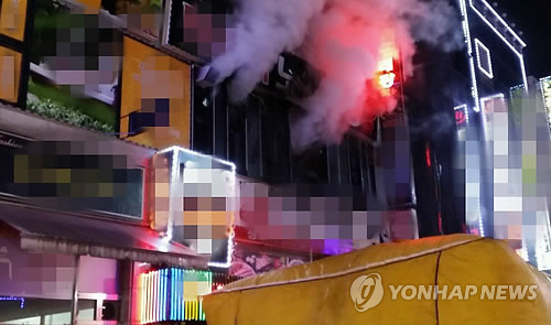 | △ 안산 노래방 화재 현장 (안산=연합뉴스) 1일 오전 2시 5분께 경기도 안산시 단원구 고잔동 4층짜리 상가건물 2층 노래방에서 불이 나 건물 안에 있던 20명이 연기 흡입, 병원으로 이송돼 치료를 받았다. 2015.2.1 <<경기도소방재난본부>> you@yna.co.kr |