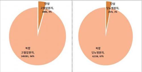 이처럼 다른 질환을 함께 갖고 있는 환자들은 고혈압이나 당뇨병 하나만 앓고 있는 환자들보다 의료이용 기간은 2.5∼2.6배, 연간 의료비 총액은 4배 가량 많았다.