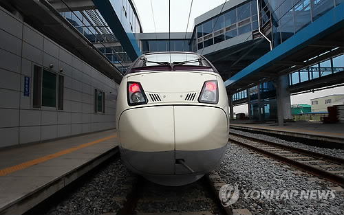 | △ 개막 앞둔 '호남고속철도' 시대 (광주=연합뉴스) 한종찬 기자 = 한국철도시설공단이 충북 오송 ~ 광주 송정 간 182.3km의 호남고속철도를 오는 3월 개통한다. 이번 신설 노선 개통으로 KTX이용시 서울에서 광주 송정역까지 기존보다 66분 단축된 1시간 33분 만에 이동할 수 있게 된다. 사진은 14일 광주 송정역에 정차한 호남고속철. 2015.1.15 saba@yna.co.kr |