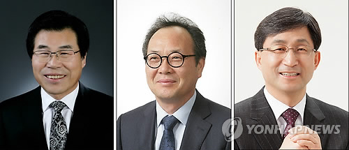 | △ 안동대 총장 후보들 (안동=연합뉴스) 이덕기 기자 = 국립 안동대학교 제7대 총장 임용 후보자 선거에 출사표를 던진 환경공학과 김태동(56)교수(사진 왼쪽부터), 회계학과 권태환(58)교수, 경제학과 최성관(60)교수(이상 기호 순서). 2015.2.2. <<안동대>> duck@yna.co.kr |