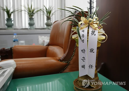 (서울=연합뉴스) 정윤섭 기자 = 박근혜 대통령은 3일 새로 선출된 새누리당 유승민 원내대표에게 난을 보내 축하의 뜻을 전달했다.