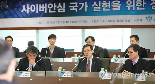 미래창조과학부는 3일 서울 포스트타워에서 임종인 청와대 안보특보, 윤종록 미래부 2차관, 정보보호최고책임자(CISO), 화이트해커, 정보보호 업체 등 산·학·연 정보보호 전문가 30여 명이 참석한 가운데 사이버안심 국가 실현을 위한 정보보호 대토론회를 개최했다.
