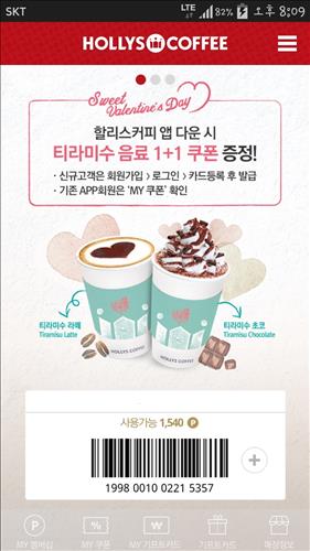 앱 출시를 기념해 오는 15일까지 앱을 내려받고 멤버십 등록을 한 고객 전원에게 티라미수 음료 1+1 쿠폰을 증정한다.
