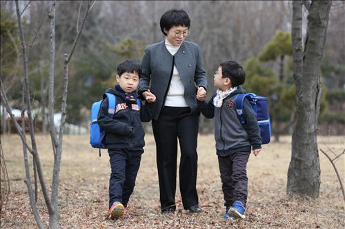| △ 취학자녀 돌봄 휴가 제도인 '학교 다녀오겠습니다'에 참여 중인 할리데이비슨 코리아 재경팀 윤정희 부장이 두 아들의 초등학교 입학 준비를 돕고 있다. |
