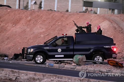 | △ 요르단, IS 석방요구 테러범 사형 집행 (AP=연합뉴스) 극단주의 무장단체 이슬람국가(IS)에 억류돼 있던 요르단 조종사 마즈 알카사스베 중위의 살해 영상이 공개된 지 수시간 만인 4일(현지시간) 요르단은 IS가 석방을 요구하던 테러범 사지다 알리샤위와 알카에다 간부 지아드 알카르볼리 등 2명의 이라크인 사형수를 교수형에 처했다. 사진은 요르단 보안군이 사형을 집행하고 스와카 교도소를 떠나고 있는 모습. |