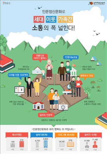 인생나눔교실에 30억원, 인문예술캠프와 디지털 인문 프로젝트에 각각 10억원을 투입한다. 이 같은 신규사업 시행 등을 통해 올해 총 6천800개 기관 및 71만4천명의 참여를 이끌어낼 수 있을 것으로 문체부는 전망했다.