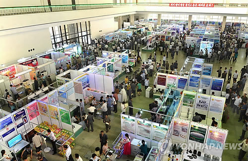 | △ 지난해 7월 30일 북한 평양 3대혁명전시관 새기술혁신관에서 열린 제13차 전국 발명 및 새기술 전람회 개막 당시 모습.<<연합뉴스DB>> |