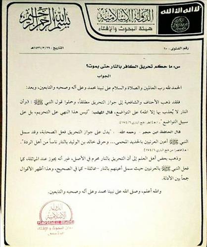 IS '산채로 화형' 정당화 율법해석 배포