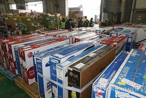| △ (인천=연합뉴스) 지난달 5일 인천 중구 운서동 인천공항세관검사장에서 직원들이 해외직구로 들어온 물품을 분류하고 있다. |