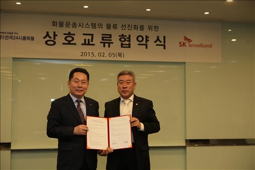 (서울=연합뉴스) 전성훈 기자 = SK브로드밴드[033630]는 전국24시콜화물과 첨단 통신인프라 구축·솔루션 제공에 관한 양해각서(MOU)를 맺었다고 5일 밝혔다.