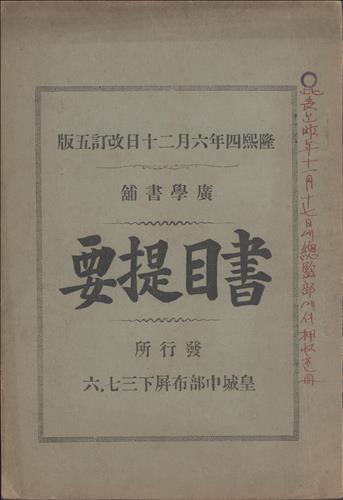 일제 강점기 출판사 광학서포(廣學書鋪)가 1910년 6월 발행한 판매도서목록 '서목제요'(書目提要)를 보면 동그라미 도장이 찍힌 책들이 적잖이 눈에 띈다. 이 표시의 정체는 목록 표지에 붉은 펜으로 적힌 글을 보면 알 수 있다.