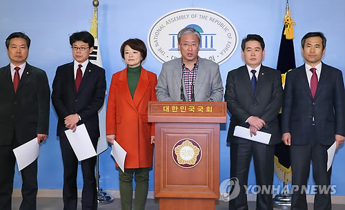 | △ 야당 국무총리후보자 인사청문회 특위 기자회견 (서울=연합뉴스) 진성철 기자 = 유성엽 간사 등 '이완구 국무총리 후보자 인사청문회' 야당 특위위원들이 8일 국회 정론관에서 기자회견하고 있다. 왼쪽부터 홍종학, 진성준, 진선미, 유성엽, 김경협, 김승남 의원. zjin@yna.co.kr |