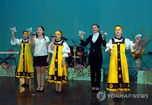 | △ 북한-러시아 경제문화협정 65주년 (평양 조선중앙통신=연합뉴스) 북한과 러시아의 경제문화협정 체결 65주년을 맞아 친선모임이 2일 모란봉제1중학교에서 열렸다고 조선중앙통신이 보도했다. 2014.4.2 jjaeck9@yna.co.kr |