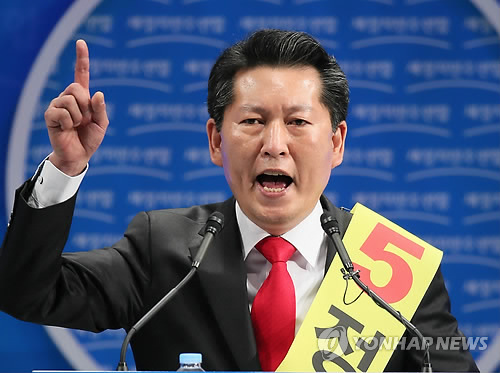 | △ 정청래 최고위원 후보자 연설 (서울=연합뉴스) 진성철 기자 = 정청래 최고위원 후보자가 8일 서울 송파구 올림픽체조경기장에서 열린 새정치민주연합 제1차 정기전국대의원대회에서 후보자연설하고 있다. 2015.2.8 zjin@yna.co.kr |