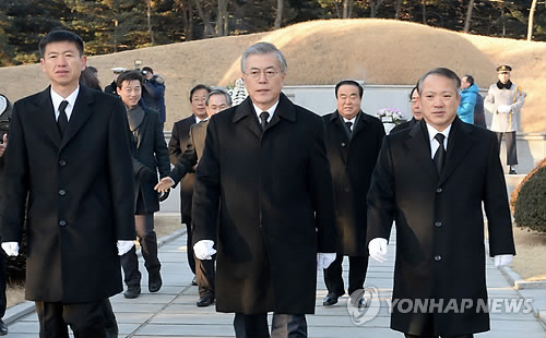 | △ 고(故) 이승만 전 대통령 묘역 참배 마친 문재인 (서울=연합뉴스) 이상학 기자 = 새정치민주연합 문재인 대표가 9일 오전 동작구 국립서울현충원 고(故) 이승만 전 대통령 묘역을 참배한 뒤 이동하고 있다. |
