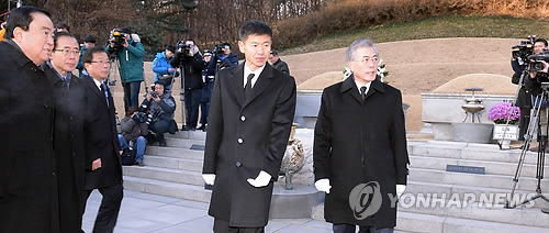 문 대표와 당 대표 경선에서 겨뤘던 '86(60년대생, 80년대 운동권출신)그룹' 출신 이인영 의원도 이날 현충원에서 취재진을 만나 "전 아직 마음의 준비가 안 됐다"며 두 전직 대통령 묘역 참배에 거부 반응을 보였다.