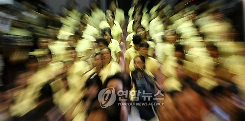 | △ 통일 노래 부르는 탈북 여성들 (연합뉴스 자료사진) |