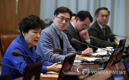| △ 현안 발언하는 박 대통령 (서울=연합뉴스) 도광환 기자 = 박근혜 대통령이 9일 오전 청와대에서 열린 대통령 주재 수석비서관회의에서 증세 문제 등 현안에 대해 모두 발언하고 있다. |