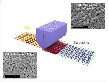 연구진은 이 연구에서 페로브스카이트 박막 제작에 처음으로 슬롯다이코팅 공정을 도입하고 질소가스로 기판 온도를 조절해 페로브스카이트 결정 크기가 수 마이크로미터(㎛=100만분의 1m)로 균일한 필름을 만드는 데 성공했다.