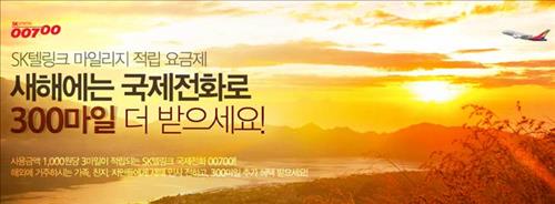 (서울=연합뉴스) 전성훈 기자 = SK텔링크는 이달 28일까지 '00700 아시아나마일리지 적립요금제'에 가입하는 모든 신규 고객에게 사용요금당 제공되는 기본 마일리지 외에 300마일을 추가 적립해준다고 10일 밝혔다.