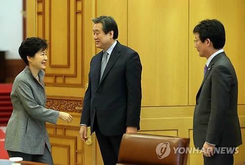 박 대통령도 전날 밝힌 '선 경제활성화· 후 세금논의' 입장을 설명하며, 김 대표가 외신기자클럽 회견에서 대통령과 여당 입장이 다르지 않다고 발언한 것을 콕집어 언급했다고 한다.