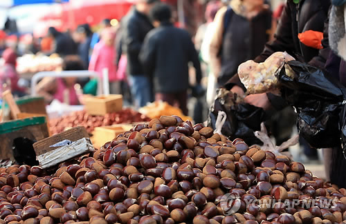 | △ 모란시장 설 대목 (성남=연합뉴스) 홍해인 기자 = 설 명절 대목을 앞두고 4일 경기도 성남시 중원구 모란시장을 찾은 시민들이 밤, 대추 등 제수 용품들을 살펴보고 있다. 2015.2.4 hihong@yna.co.kr |
