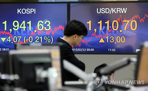 (서울=연합뉴스) 김지연 기자 = 12일 코스피는 그리스 우려에 하루 만에 하락으로 전환했으며 코스닥은 소폭 올라 600선을 지켰다.