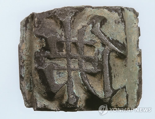 | △ 현존하는 세계에서 가장 오래된 금속활자 목판인쇄물인 직지심체요절(이하 직지)보다 최소 138년 이상을 앞서는 최고(最古) 금속활자로 주장되는 증도가자 중 '佛'(불)자. 최근 이들 활자 일부에 있는 먹을 분석한 결과 고려시대에 속한다는 결과가 나왔다. ( 연합뉴스 자료사진) |