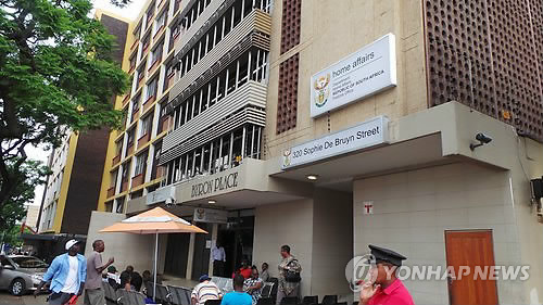 | △ 이민법 개정으로 어수선한 남아공 내무부 (요하네스버그=연합뉴스) 류일형 특파원 = 이민법 개정에 따른 불편으로 외국인들의 불만의 목소리가 높은 가운데 23일(현지시간) 오후 남아공 행정수도 프리토리아 시내에 있는 남아공 내무부 건물 앞에 민원인들이 대기하고 있다. 2014.12.24 ryu625@yna.co.kr |