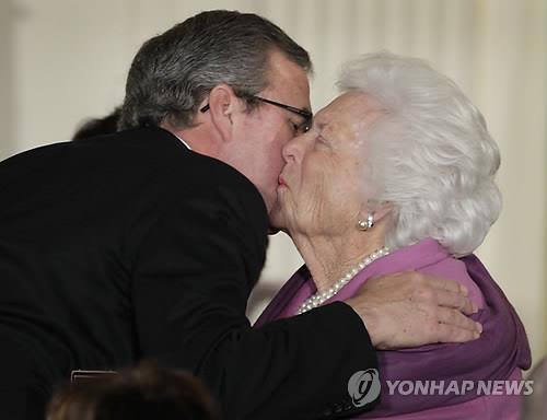 (서울=연합뉴스) 김경윤 기자 = 미국 정치명문가 부시 집안의 안주인 바버라 부시(89) 여사가 오랜 기간 반대해오던 아들 젭 부시(62) 전 플로리다 주지사의 대통령선거 출마를 공개적으로 승낙했다.
