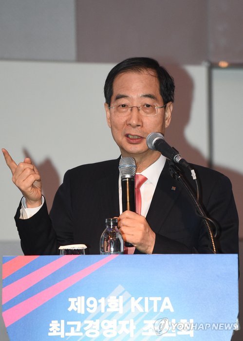 | △ 강연하는 한덕수 무협회장 (서울=연합뉴스) 한덕수 한국무역협회(KITA) 회장이 28일 서울 강남구 삼성동 코엑스인터컨티넨탈호텔에서 열린 '제91회 KITA 최고경영자 조찬회'에서 '최근의 무역동향과 한국의 대응'을 주제로 강연하고 있다. 2015.1.28 << 무역협회 제공 >> photo@yna.co.kr |